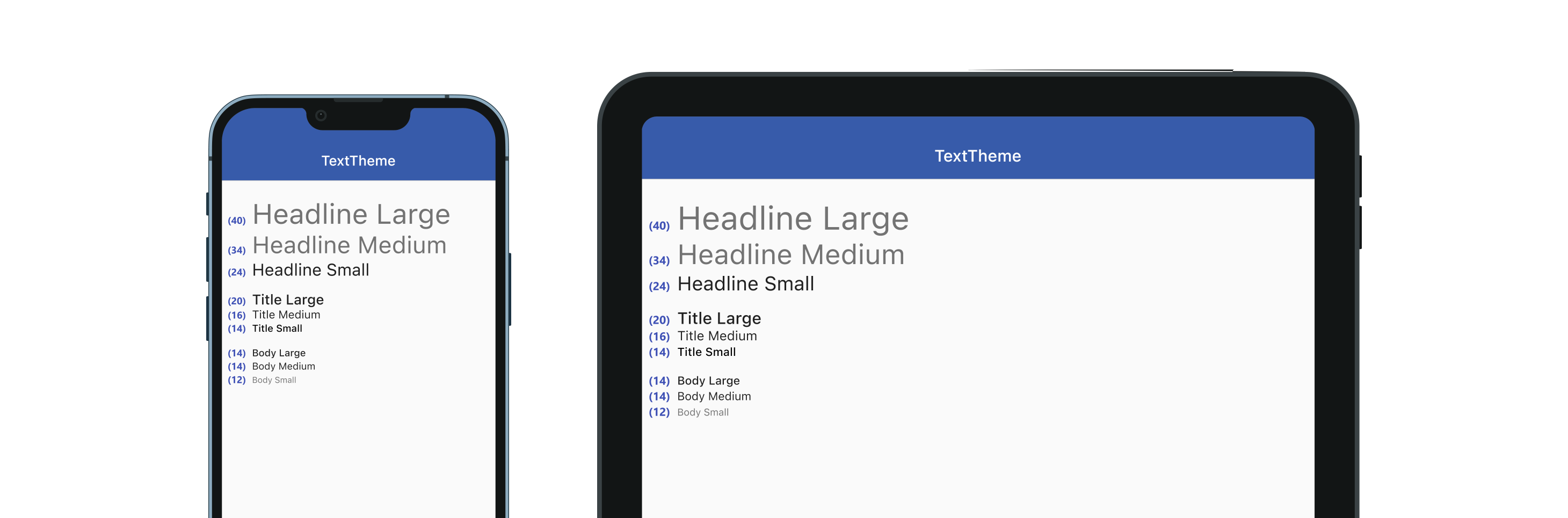 Notice that text and padding is a very similar size between the two. This works as intended without any special tweaks, Flutter (just like native apps) use a pixel scaling factor set by the device manufacture which ensures text and other UI elements are a similar physical size regardless of platform.